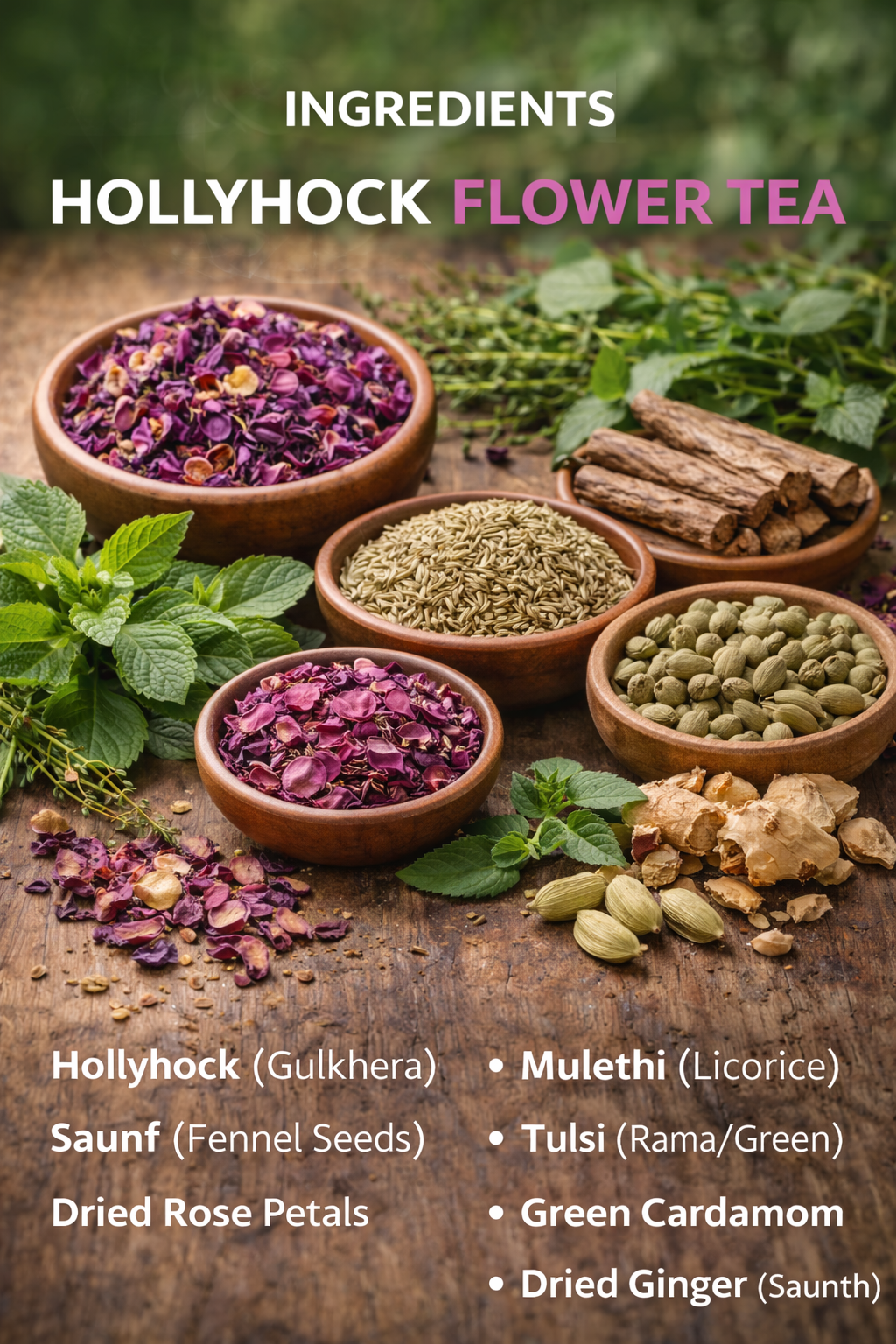 A masterfully balanced infusion of Gulkhera (Hollyhock), Saunf, and delicate Rose petals. Crafted for those who seek digestive harmony and a moment of pure serenity.